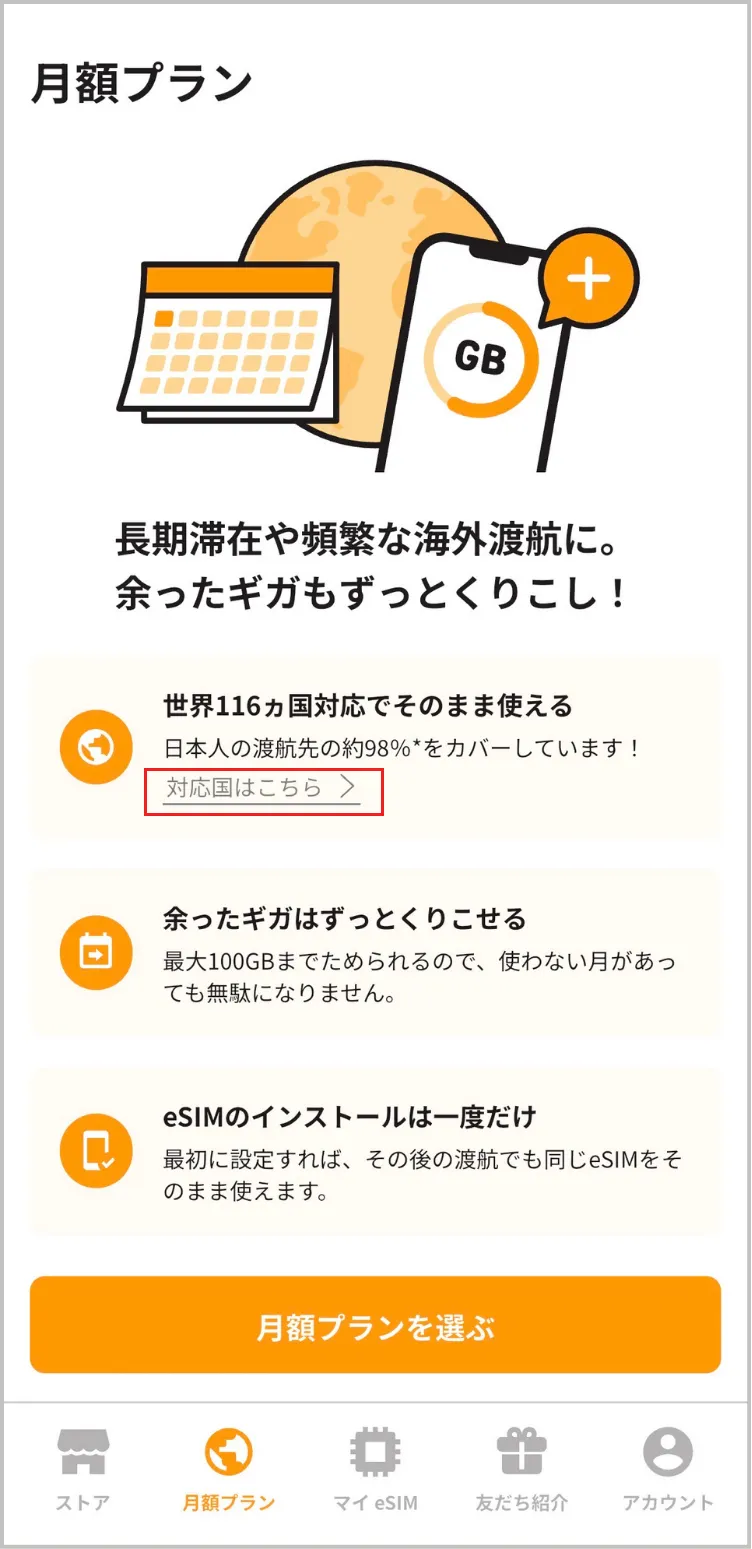 複数国でも同じeSIMを利用でき、余った容量もムダなく活用できます。