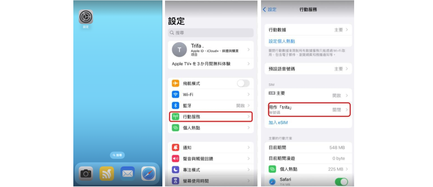 完成啟用eSIM後,以下是辨別trifa eSIM的步驟: